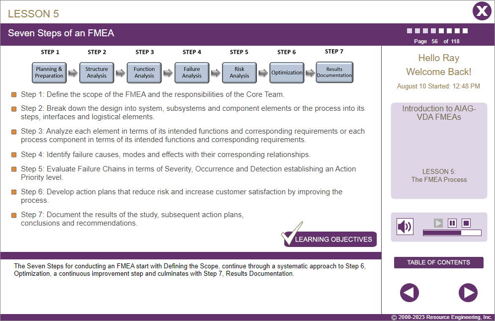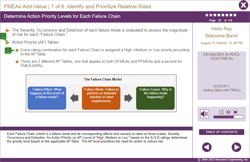 IMPORTANT NOTE: While the Introduction to AIAG-VDA FMEAs is in line with the AIAG-VDA FMEA Handbook, it is not intended as a replacement for thorough training or the source Handbook. We recommend that this course be used in conjunction with the official Handbook.
